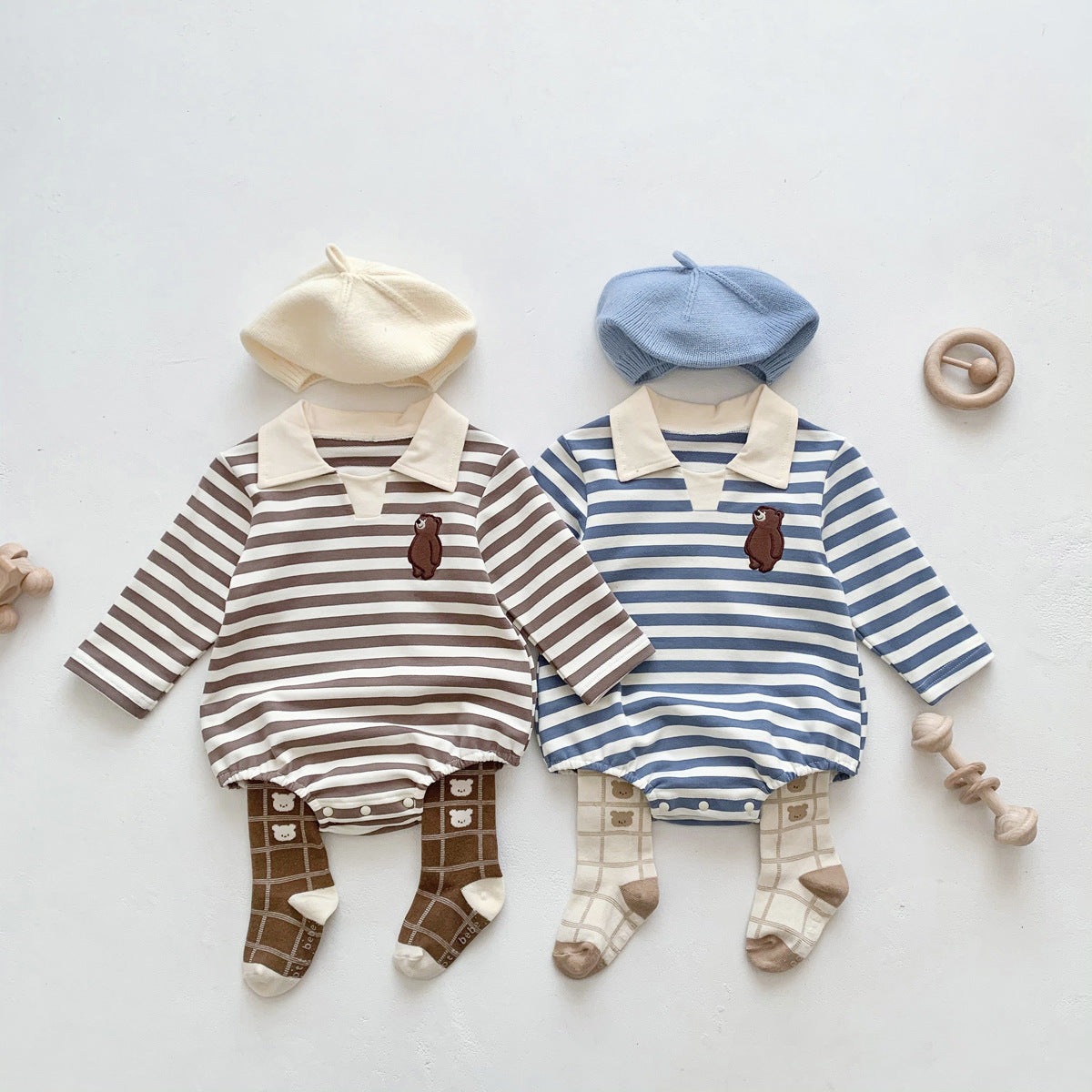 Baby Striped Lapel Bodysuit